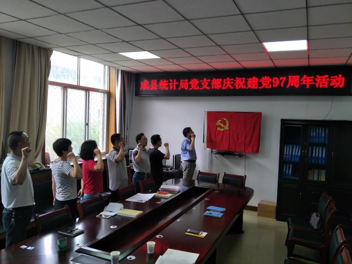 为庆祝中国共产党成立97周年,进一步加强全局党员队伍建设,激发广大党员干部以饱满的精神状态投入到统计工作中去,6月26日下午,成县统计局党支部庆祝建党97周年暨七一表彰大会。
