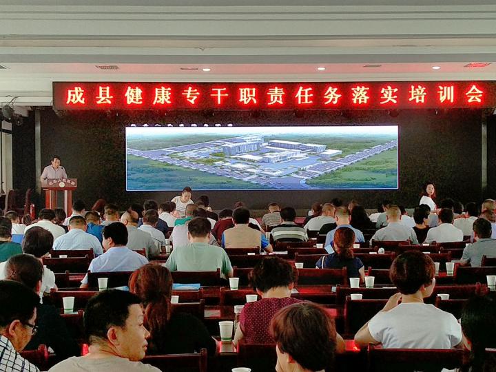 2018年6月15日上午,在成县人民医院六楼会议室召开了成县建档立卡贫困人口“一人一策”健康帮扶措施制定培训会。出席会议的有兰大二院医务科任伟科长、王晓元副主任医师、葛丹副主任医师、孔桂香副主任医师、郑婷副主任医师、成县人大副主任任育新同志和政府副县长张靖邦同志,17个乡镇的分管领导、卫计办主任、扶贫办、人社局、民政局、平安保险公司、残联等单位健康扶贫工作业务负责人、县直各医疗机构负责人、卫计局机关领导班子及各股室负责人、21所乡镇卫生院院长、县级签约团队专家等约200余人参加了会议。